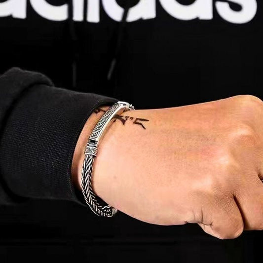Silberarmband Herren : S925 Silber Retro Trendy Geprägtes Pin - Armband