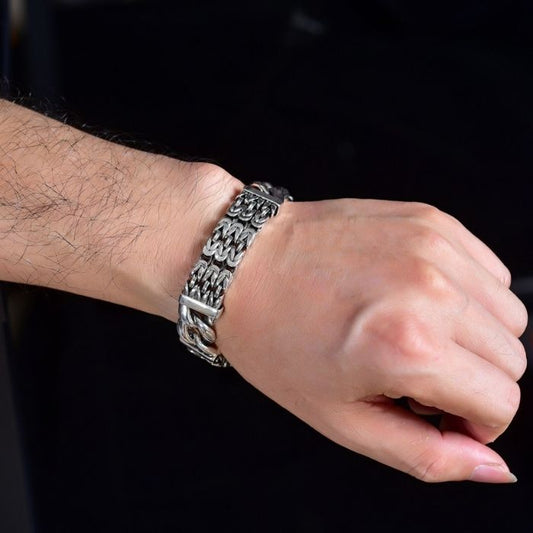 Silberarmband Herren - S925 Silber Schmuck Mode Punk Stil Hipster Herren - Armband