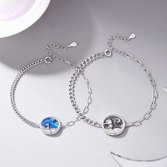 Silberarmband Herren Damen : S925 Silber Kleiner Prinz und Fuchs Paar Armband