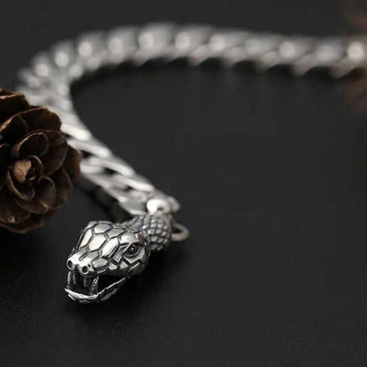 Silberarmband Herren : S925 Sterling Silber Handgelenk Snake Head Clasp Armband