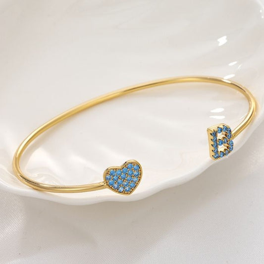 Armband mit Buchstaben : Personalisiertes buntes Zirkon Buchstaben Armband 9mm Buchstabe und Herz Manschettenarmband
