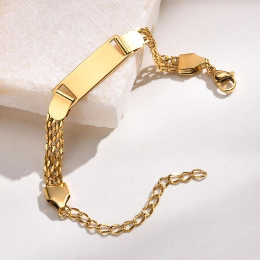 Goldarmband mit Gravur : 14 Karat Gelbgold Gravierbares Flaches Curb Link ID Armband