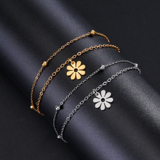 Edelstahlarmband Damen : Daisy Flower Armband Double Layers Bead Chain - Armband