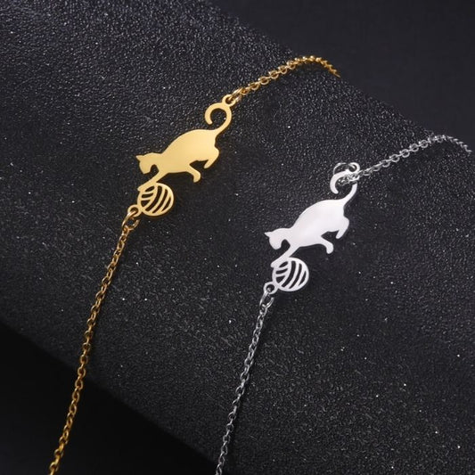 Edelstahlarmband Damen : Katze und Ball Charm - Armband