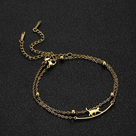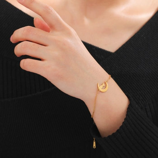 Edelstahlarmband Damen : Mondsichel Niedliche Katze - Armband