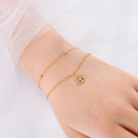 Edelstahlarmband Damen : Baum des Lebens Doppelkette Perlenarmband