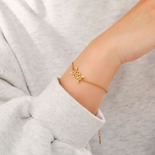Edelstahlarmband Damen : Dreifaches Mondgöttin Edelstahl Amulett Armband