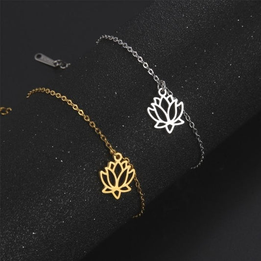 Edelstahlarmband Damen : Gold Farbe Lotus Charm Armband für Damen