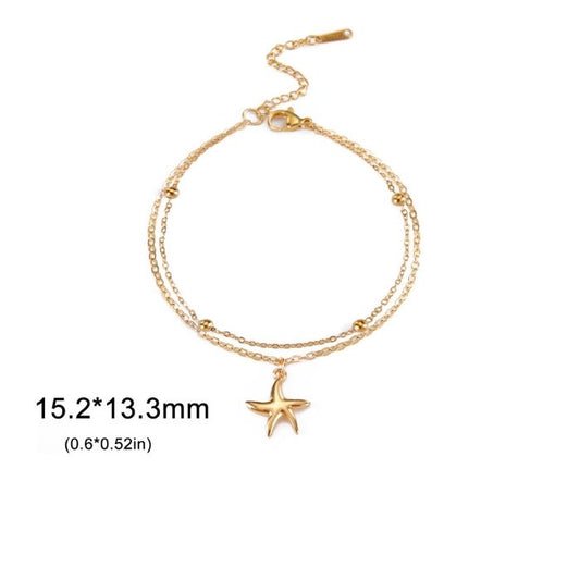 Edelstahlarmband Damen : Niedlicher Seestern Doppelschicht Perlenketten Armband