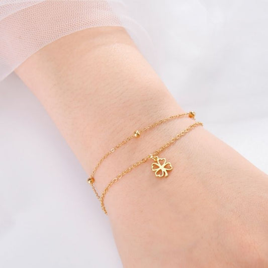 Kleeblatt Armband Damen : Vierblättriges Kleeblatt Armband Edelstahl Glücksschmuck Doppelketten Armband für Damen