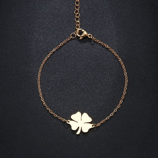 Kleeblatt Armband : Goldfarbenes Glücksklee Armband 316L Edelstahl