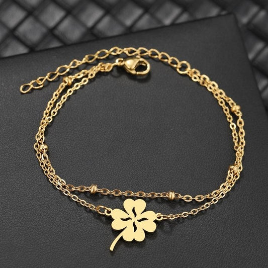 Kleeblatt Armband : Mehrschichtige Perlenkette Kleeblatt Armband 316L