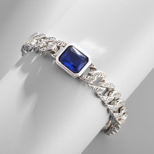 Edelstahlarmband Damen Herren : Saphir Kubanisches Kettenarmband, Trendy Domination Armband