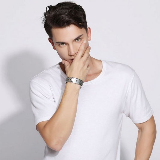 Edelstahlarmband Herren : 316L Edelstahl Christliches Kreuz Heilige Schrift Gravierte Geflochtene Kette Armband