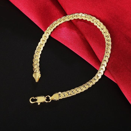 Edelstahlarmband Damen Herren : Flache Seite Kette Armband 24K Gold Plattiert