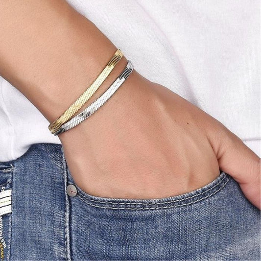 Edelstahlarmband Herren und Damen : Gold Farbe Charme Schlange Kette - Armband