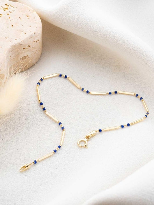 Goldarmband Damen 585 : Echt 14 Karat Gold Blau Emaille Armband