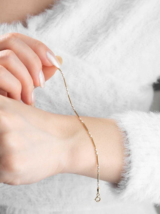 Feines Goldarmband 585 : 14 Karat Gold Dünnes Gespiegeltes Armband mit Goldstift 2mm