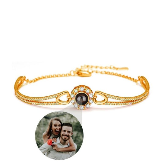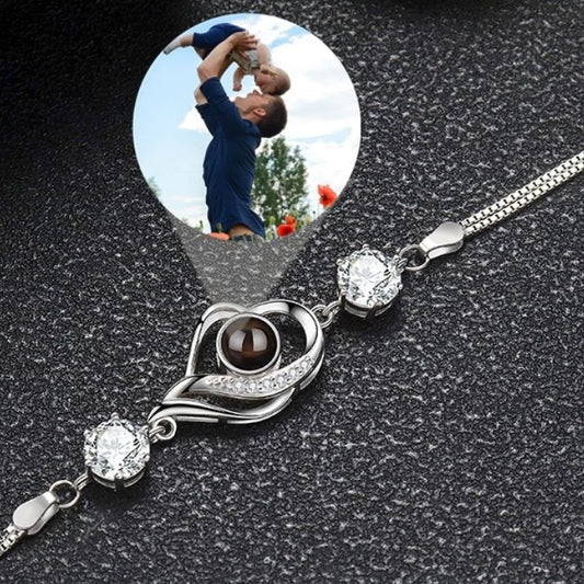 Fotoarmband : Besondere Projektion Armband 925 Sterling Silber Personalisierte Foto Herz-Armband
