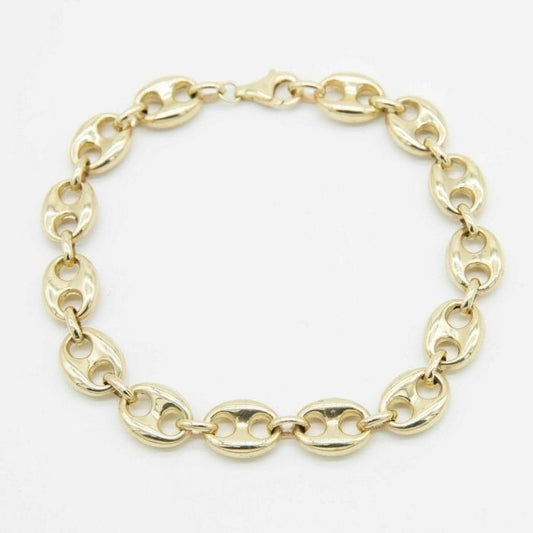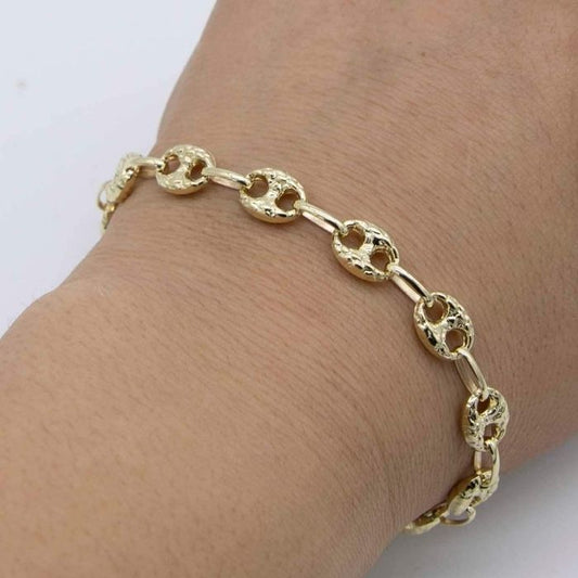 Goldarmband Damen 417 Karat : 7,5 mm Puffed Mariner Anker texturierte Kette Armband Echte 10K Gelbgold