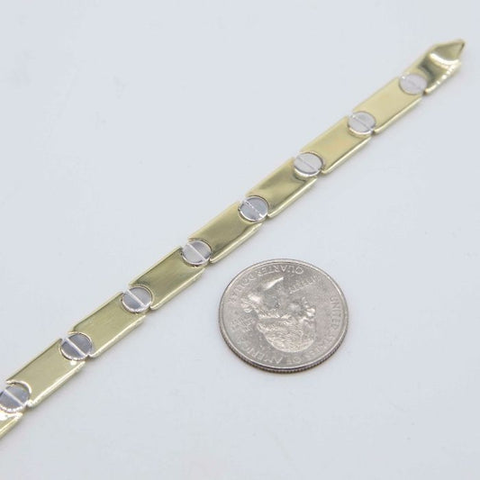 Goldarmband Damen 417 Karat Texturierte Valentino Gliederkette Armband Echt 10K Dreifarbiges Gold