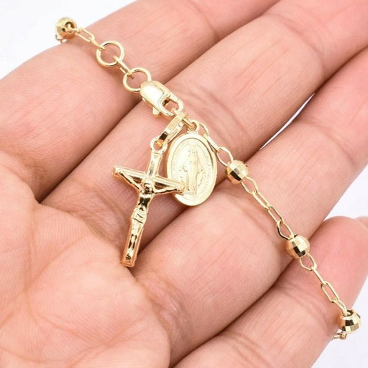 Goldarmband Kreuz und Jungfrau Maria