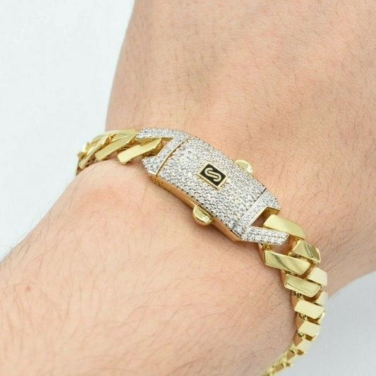 Goldarmband Herren 417 Karat : Miami Cuban Royal Link Diamantschliff Armband Echt 10K Gelb Weiß Gold