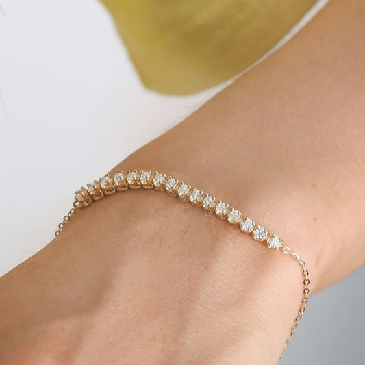 Goldarmband Damen : 417 & 750 Gelbgold 3mm Rundschliff Moissanit - Armband
