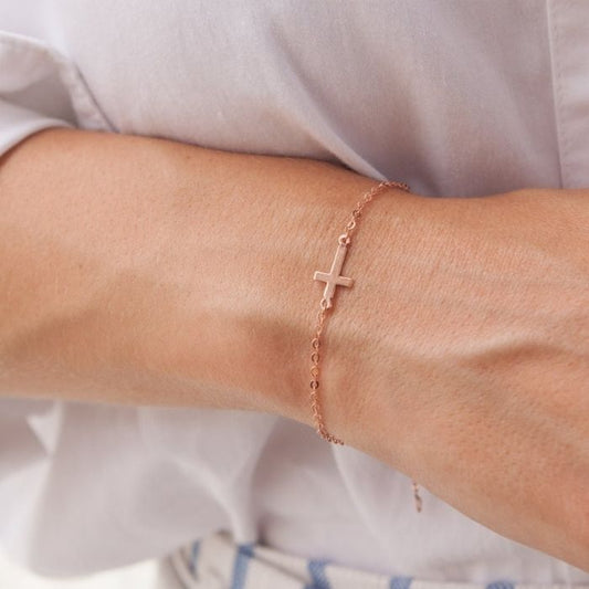 Goldarmband Damen : 14 Karat Echt Gold Christliches Taufarmband mit Kreuz - Armband