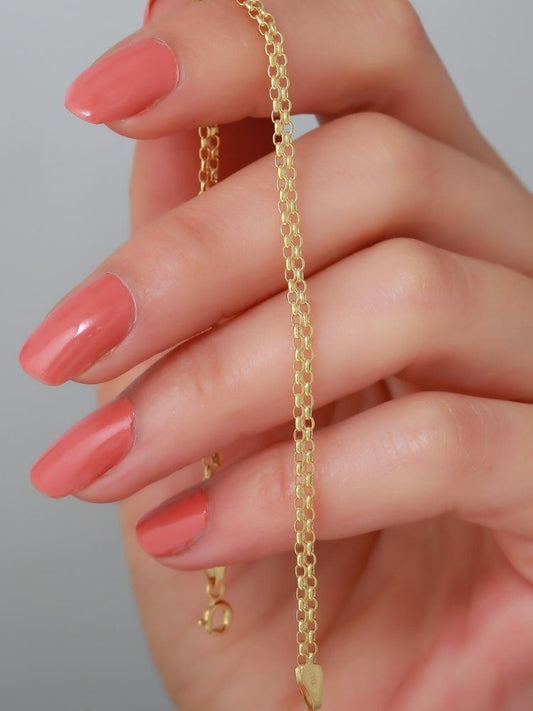 Goldarmband Damen : 14 Karat Echt Gold Büroklammer Kette Doppelschicht Armband