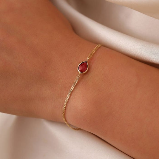 Goldarmband Damen 585 : 14 Karat Gold Rubin Doppelkette Armband