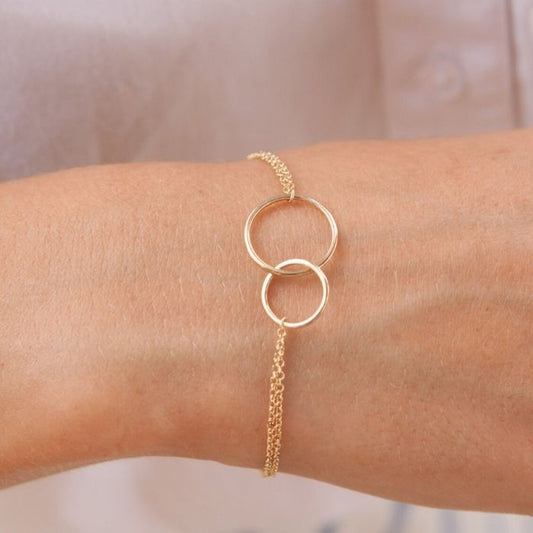 Goldarmband Damen 585 : 14 Karat Gold Glieder Armband mit Ring Doppel kreis Talisman