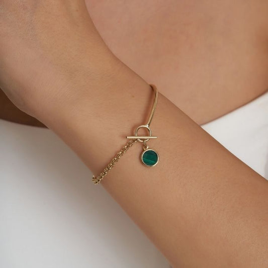 Goldarmband Damen 585 : 14 Karat Gold Grün Edelstein Malachit Armband
