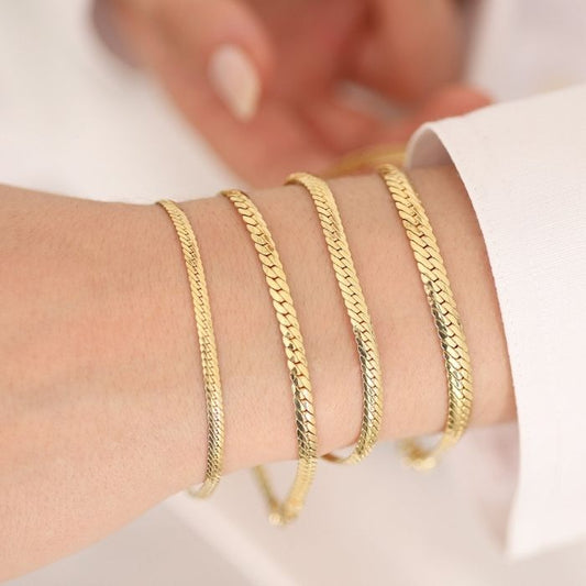 Goldarmband Damen 585 : 14 Karat Gold Italienische Schlangenkette - Fischgrät-Kettenarmband