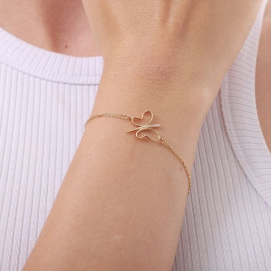 Goldarmband Damen 585 : 14 Karat Gold Schmetterling Zirkon Armband