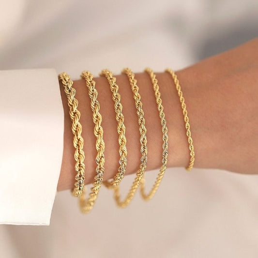Goldarmband Damen : Diamantgeschliffenes Gedrehtes 14 Karat Gold Seilarmband
