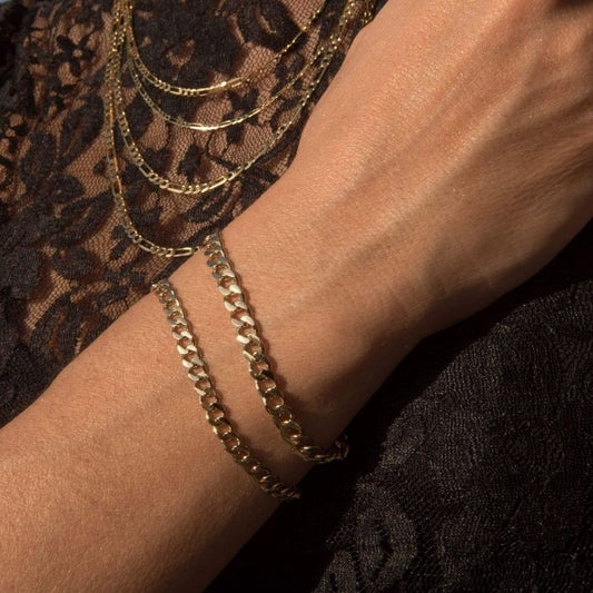 Goldarmband Damen Herren : 14 Karat Echt Gold Kubanisches Panzerkettenarmband - Unisex Kette