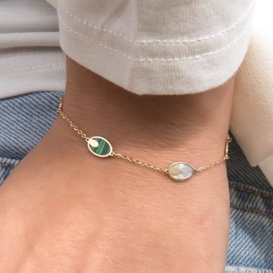 Goldarmband Damen 585 : 14 Karat Gold Hämatit Kette Armband - 1.7 Gramm