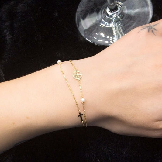 Goldarmband Damen 585 : 14 Karat Gold Baum des Lebens Kette Armband