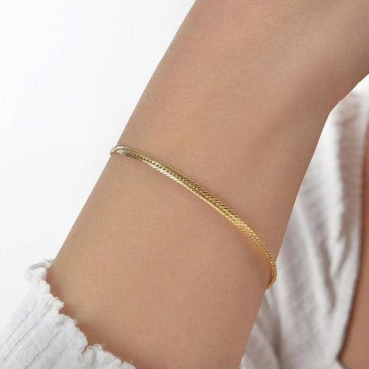 Goldarmband Damen 585 : 14 Karat Gold Schlangen Strickende Fischgratkette 3MM