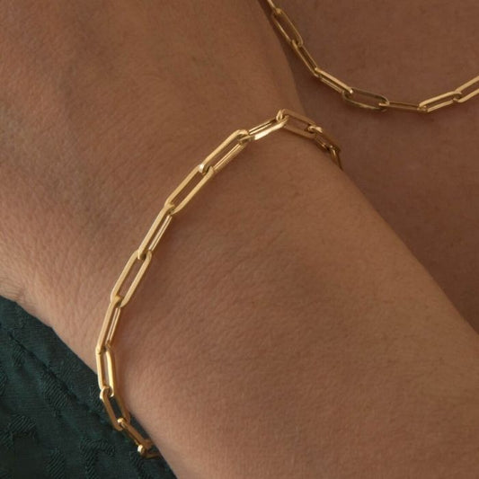 Goldarmband Damen 585 : 14 Karat Büroklammer Kette Gold - 2.9 Gramm