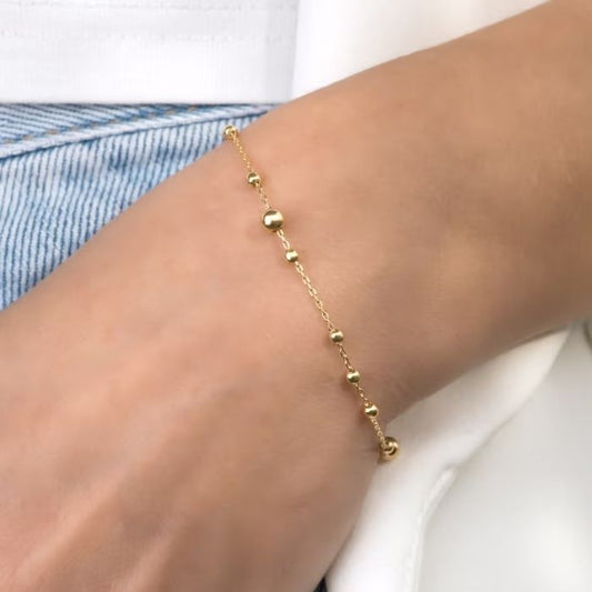 Goldarmband Damen 585 : 14 Karat Gold Tautropfen Kugel Armband