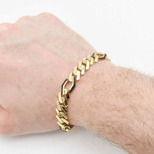 Goldarmband Damen Herren 585 : 14 Karat Gelbgold 9mm Rand Miami Cuban Figaro Link mit Onyx - Armband