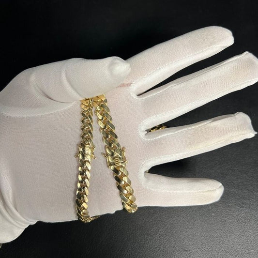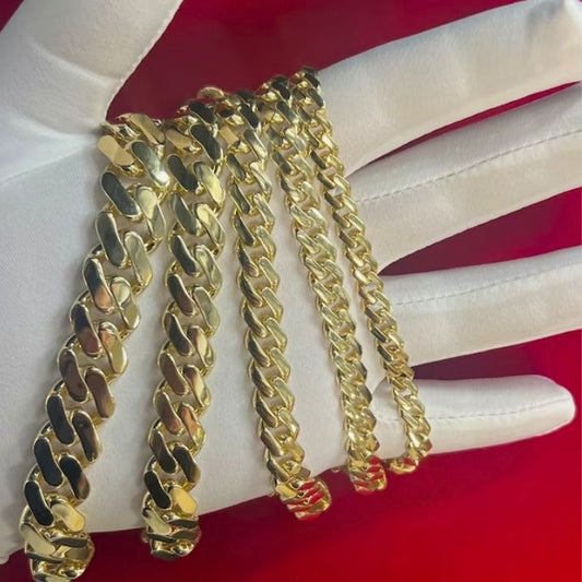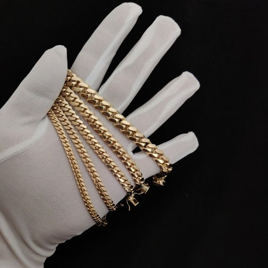 Goldarmband Damen Herren 585 : 14K Solid Gold Miami kubanische Kette, Box-Verschluss Armband