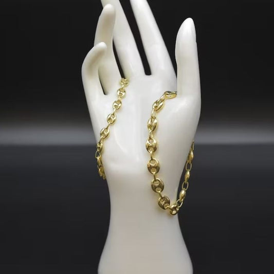Goldarmband Damen Herren 585 : 14 Karat Gelbgold Miami kubanisches Kettenarmband - Armband