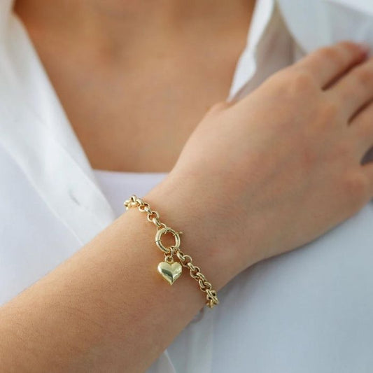 Goldarmband Damen : 14k Gold Dickes Belcher Ketten mit Herz - Armband