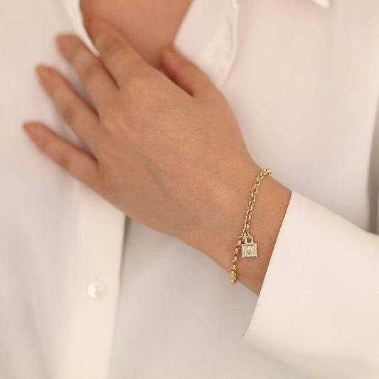 Goldarmband Damen : 14k Gold Rolo Armband mit Schloss Charm - Armband