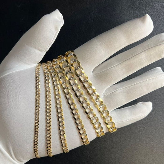 Goldarmband Damen 585 : 14 Karat Echtes Solid Gold Pave Cuban Curb Link Kettenarmband - Armband