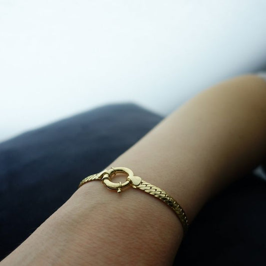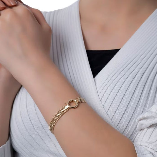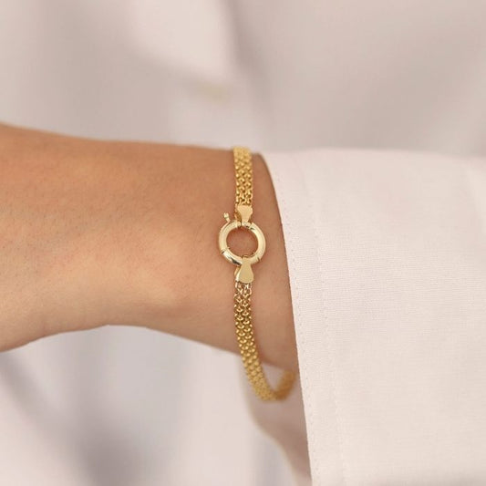Goldarmband Damen : 14K Gold Gestrickte Kette mit Matrosenverschluss - Armband