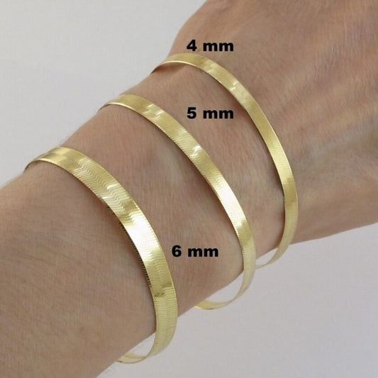 Goldarmband Damen : 14K Solid Gold Herringbone 585 - Armband